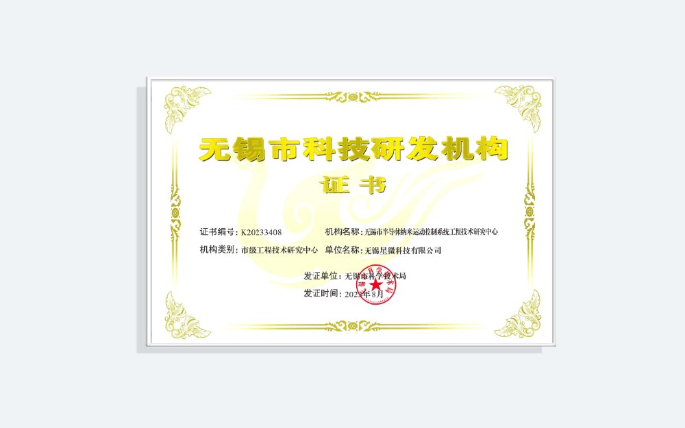 無錫市半導體納米運動控制系統工程技術研究中心 證書