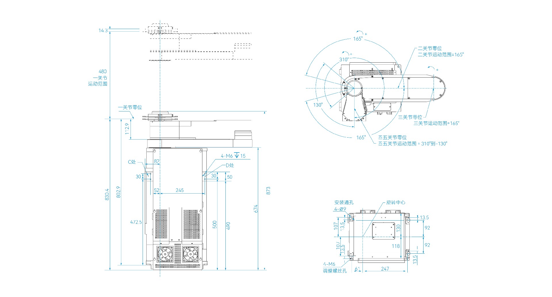 五軸半導體晶圓搬運機器人,具有獨立可控的2個旋轉手臂。可支持2 FOUP到3 FOUP的EFEM的取片工作。該機器人具有高精度,高剛性。